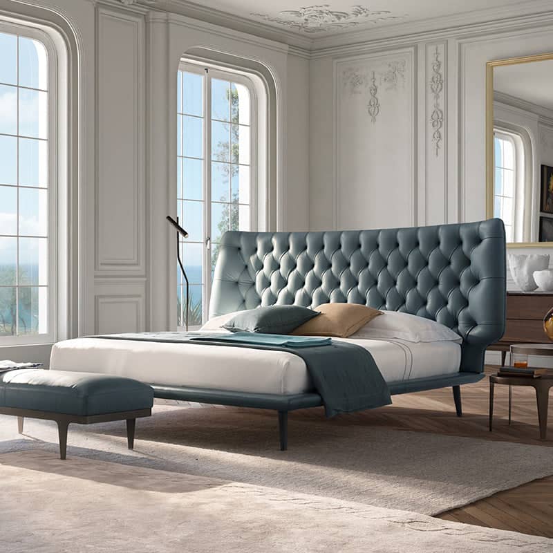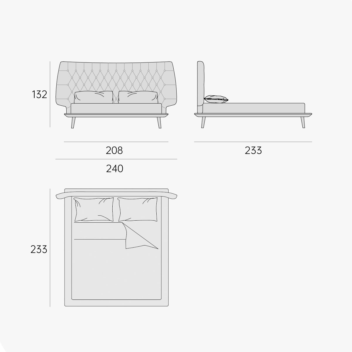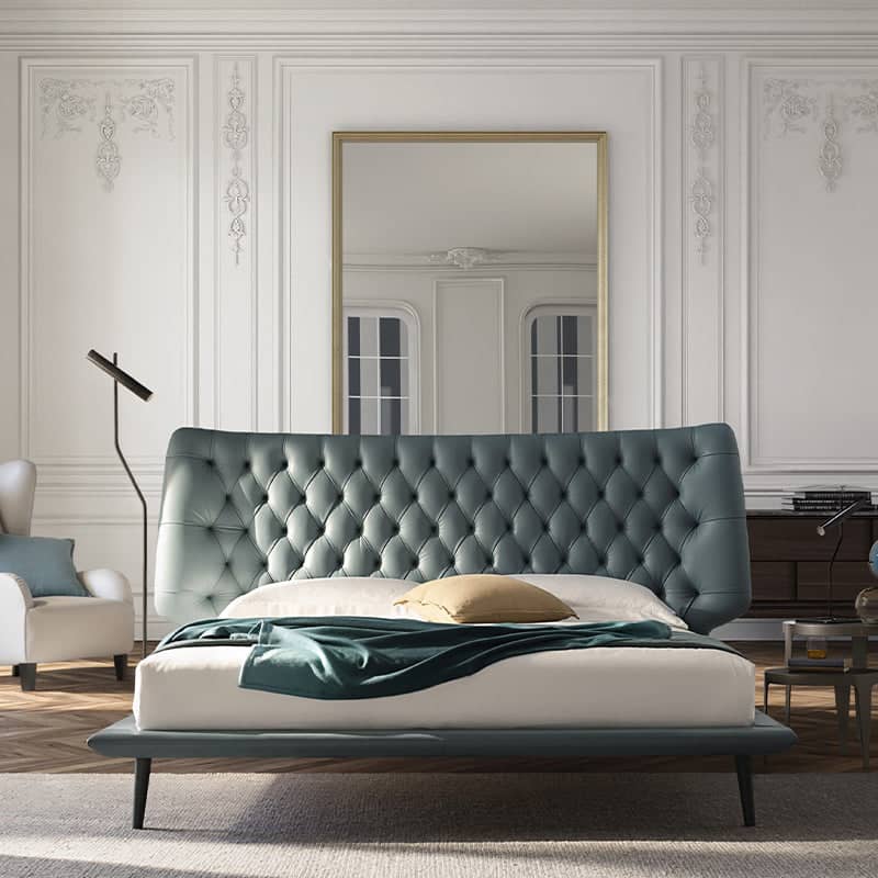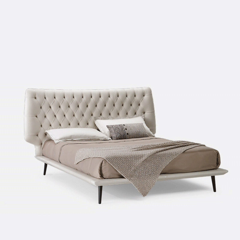 يتميز السرير بتصميم رفيع ومريح . يتميز بلمسة نهائية محايدة تنسق مع أي ديكور تقريبًا، كما أن سطح السرير المصنوع من الجلد و المعدن يمنحهه بنية صلبة ومتينة إلى جانب تصميم ممتع وانيق .