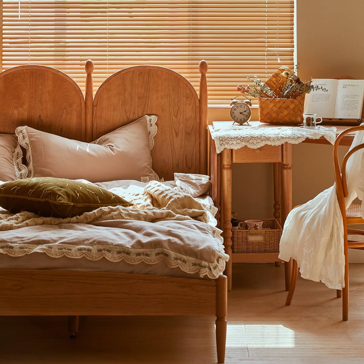 يتتميز السرير بلمسة نهائية محايدة تنسق مع أي ديكور تقريبًا ، كما أنها مصنوعة من خشب الفاخر الصلب لتكمل البنية القوية إلى جانب تصميم ممتع.