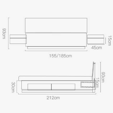 المقاس : العمق 212 * العرض 155/185 * الارتفاع 93 سم