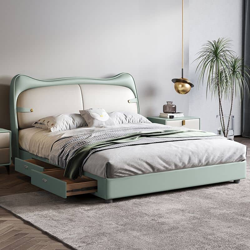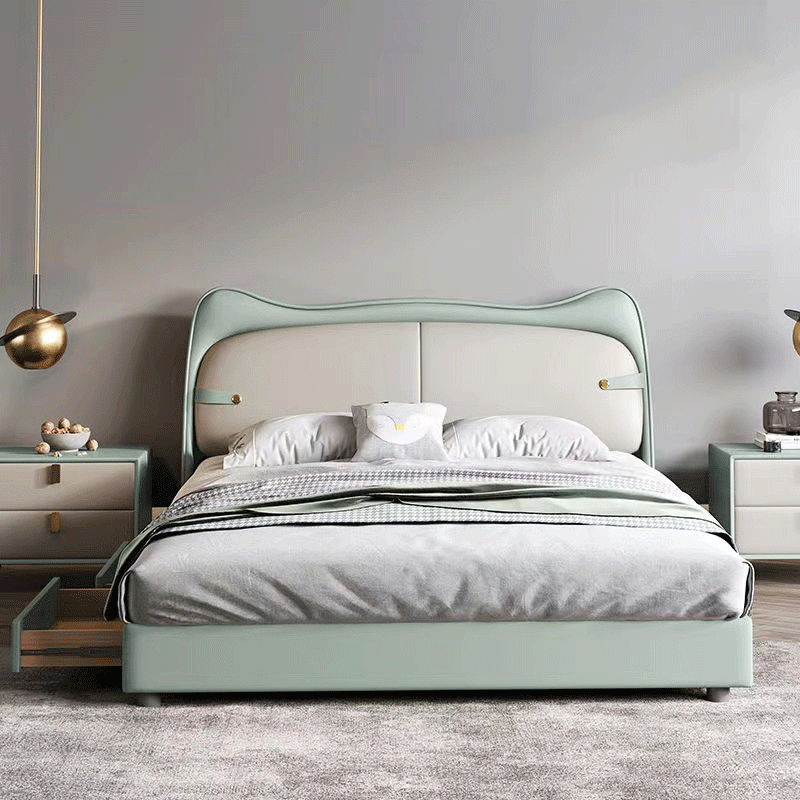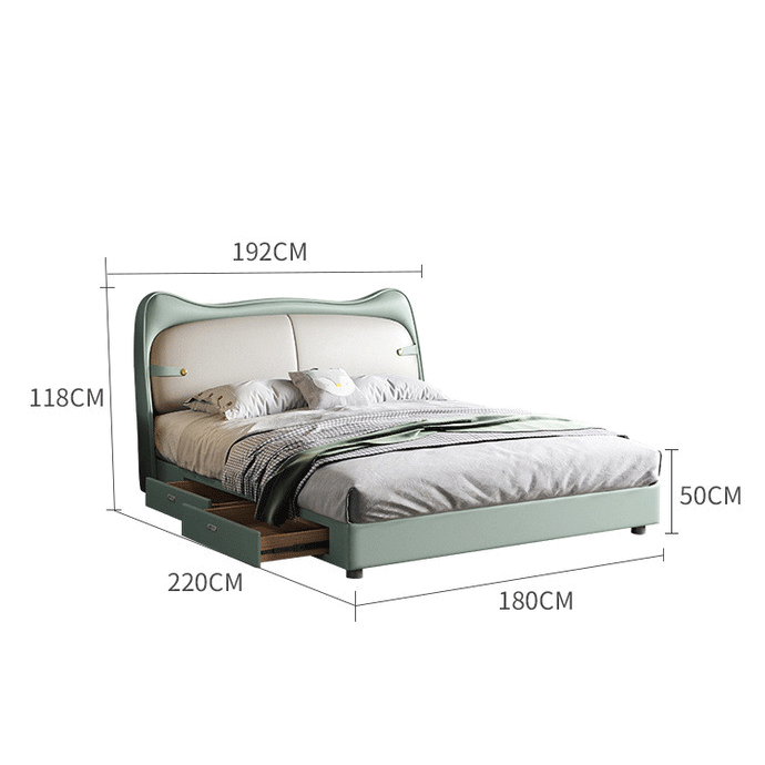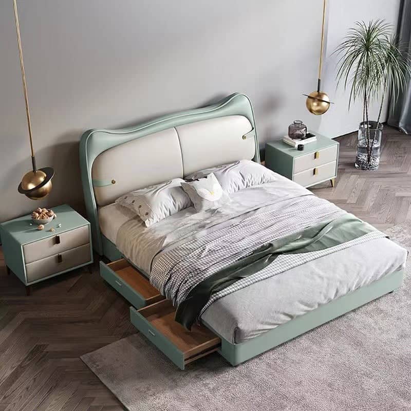 يتميز السرير بتصميم مودرن ومريح . يتميز بلمسة نهائية محايدة تنسق مع أي ديكور تقريبًا، كما أن سطح السرير المصنوع من الجلد و الخشب الام دي اف يمنحهه بنية صلبة ومتينة إلى جانب تصميم ممتع وانيق .