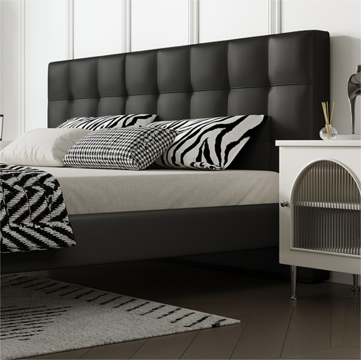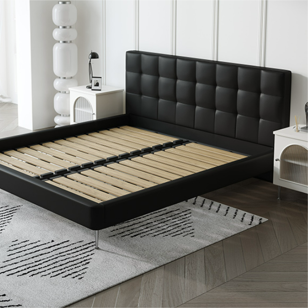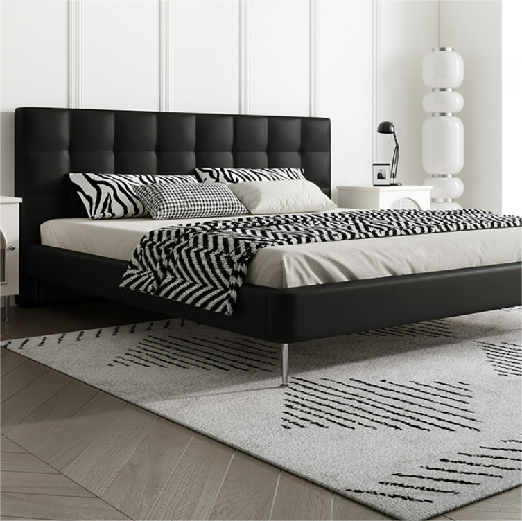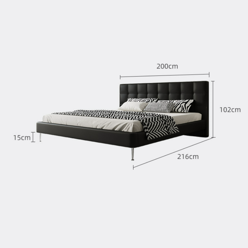يتميز السرير بتصميم حديث ومريح. يتميز السرير بلمسة نهائية محايدة تنسق مع أي ديكور تقريبًا، كما أن سطح السرير المصنوع من الخشب الكونتر والجلد والأرجل المصنوعة من المعدن يمنحهه بنية صلبة ومتينة إلى جانب تصميم ممتع وانيق .