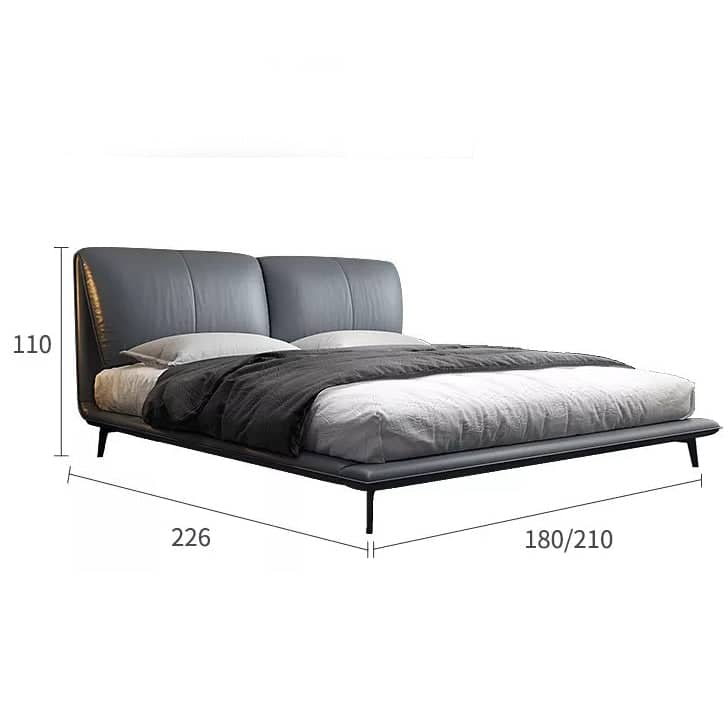 يتميز السرير بتصميم حديث ومريح. يتميز السرير بلمسة نهائية محايدة تنسق مع أي ديكور تقريبًا، كما أن سطح السرير المصنوع من الجلد والأرجل المصنوعة من المعدن يمنحهه بنية صلبة ومتينة إلى جانب تصميم ممتع وانيق .