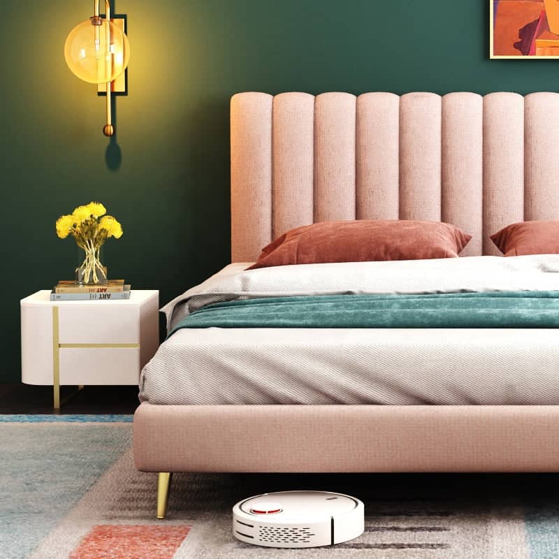 يتميز السرير بتصميم حديث ومريح. يتميز السرير بلمسة نهائية محايدة تنسق مع أي ديكور تقريبًا، كما أن سطح السرير المصنوع من الخشب الزان والقماش المخملي والأرجل المصنوعة من الخشب يمنحهه بنية صلبة ومتينة إلى جانب تصميم ممتع وانيق .