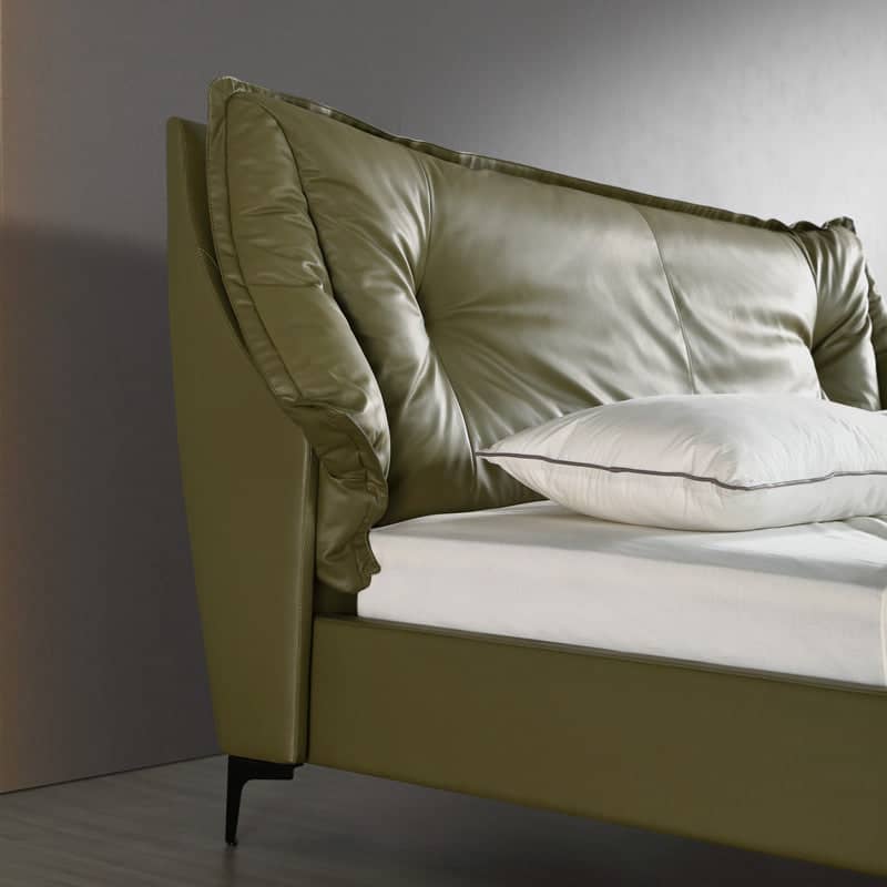 يتميز السرير بتصميم فخم ومريح . يتميز بلمسة نهائية محايدة تنسق مع أي ديكور تقريبًا، كما أن سطح السرير المصنوع من الجلد و الخشب الزان يمنحهه بنية صلبة ومتينة إلى جانب تصميم ممتع وانيق .