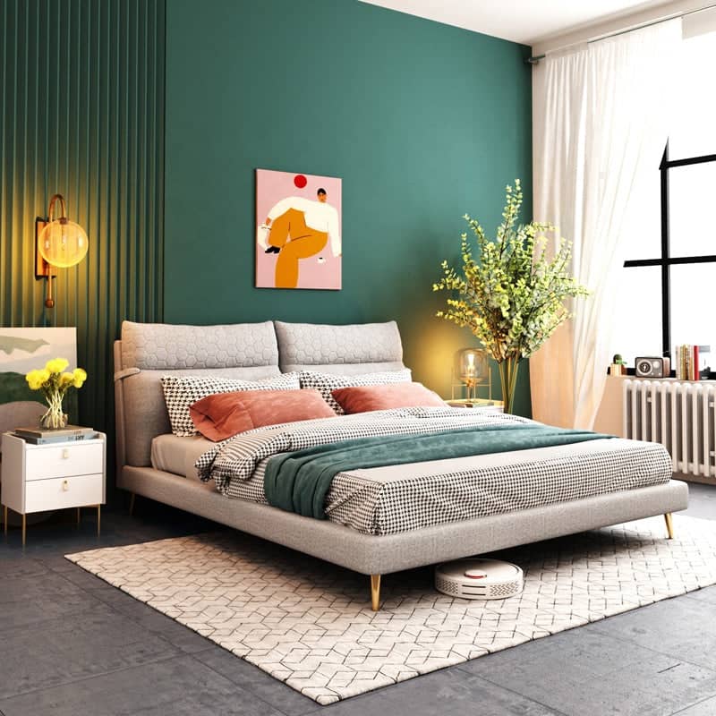 يتميز السرير بتصميم حديث ومريح. يتميز السرير بلمسة نهائية محايدة تنسق مع أي ديكور تقريبًا، كما أن سطح السرير المصنوع من الخشب الزان والقماش الكتان والأرجل المصنوعة من المعدن يمنحهه بنية صلبة ومتينة إلى جانب تصميم ممتع وانيق .