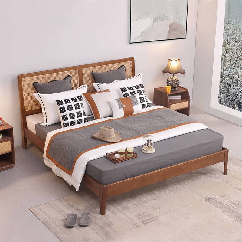 يتميز السرير بتصميم حديث ومريح. يتميز السرير بلمسة نهائية محايدة تنسق مع أي ديكور تقريبًا، كما أن سطح السرير المصنوع من الخشب الزان والروطان والأرجل المصنوعة من الخشب يمنحهه بنية صلبة ومتينة إلى جانب تصميم ممتع وانيق .