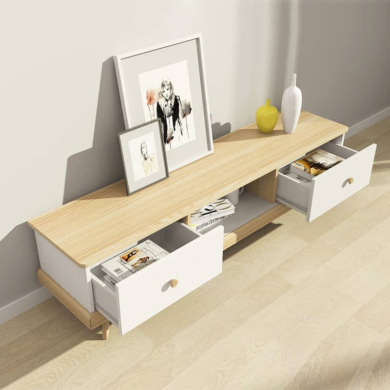 تتميز طاولة التفاز بعددة وحدات للتخزين مع بتصميم بسيط وشيك . وتتميز بلمسة نهائية محايدة تنسق مع أي ديكور تقريبًا ، كما أنها مصنوعة من خشب الام دي اف والأرجل الصلبة الخشبية لتكمل البنية القوية إلى جانب تصميم ممتع.