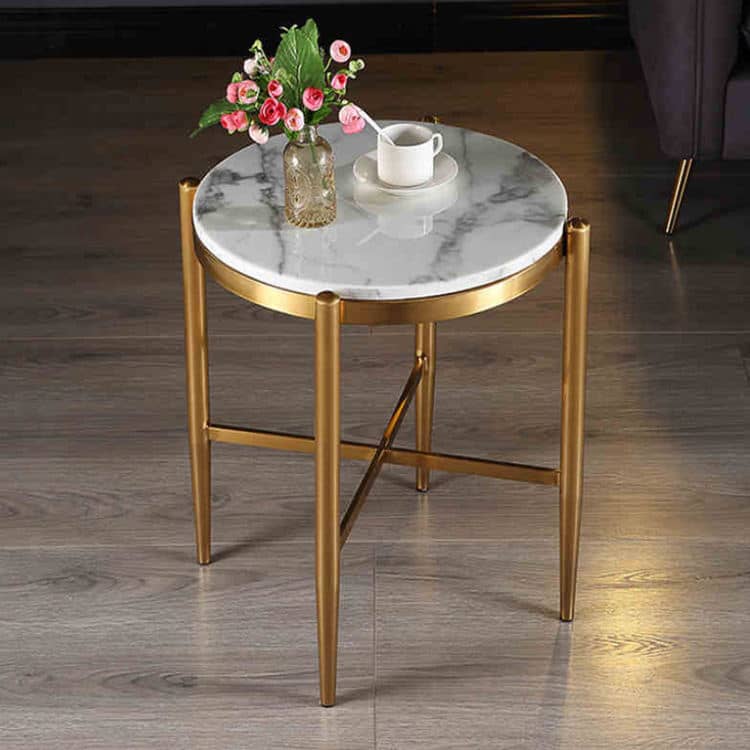 تتميز الطاولة الجانبية بسطح مفتوح مع تصميم عصري وحديث . وتتميز بلمسة نهائية محايدة تنسق مع أي ديكور تقريبًا ، كما أنها مصنوعة من المعدن والرخام والأرجل الصلبة المعدنية لتكمل البنية القوية إلى جانب تصميم ممتع.