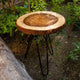 طاولة جانبية بنى فاتح وداكن بارجل حديدية مصنوعة من جذع شجر التوت يميزها بالمتانه والصلابة و مع الحفاظ على مظهرها الطبيعي قدر الإمكان ومع مرور الزمن ، يجعلك تكمل ديكور منزلك او مكتبك بتصميم مختلف وانيق ، يتحمل الخشب دراجات حرارة مرتفه فتستخدم فى الحدائق والاماكن المفتوحة .