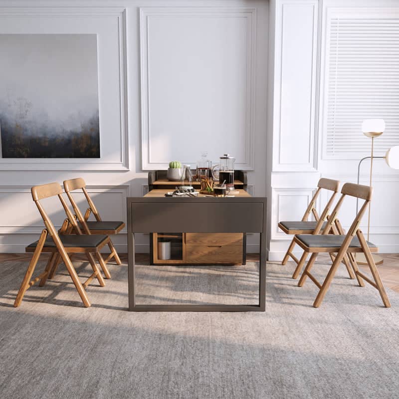 يتميز بوفيه الطعام بوحدات تخزبن مميزة وبتصميم حديث يعمل بشكل جيد في تخزين الأدوات المنزلية. يتميز بلمسة نهائية محايدة تنسق مع أي ديكور تقريبًا ، كما أن سطح البوفيه المصنوع من الخشب الزان والأرجل الخشبية يمنحهه بنية صلبة ومتينة إلى جانب تصميم ممتع.