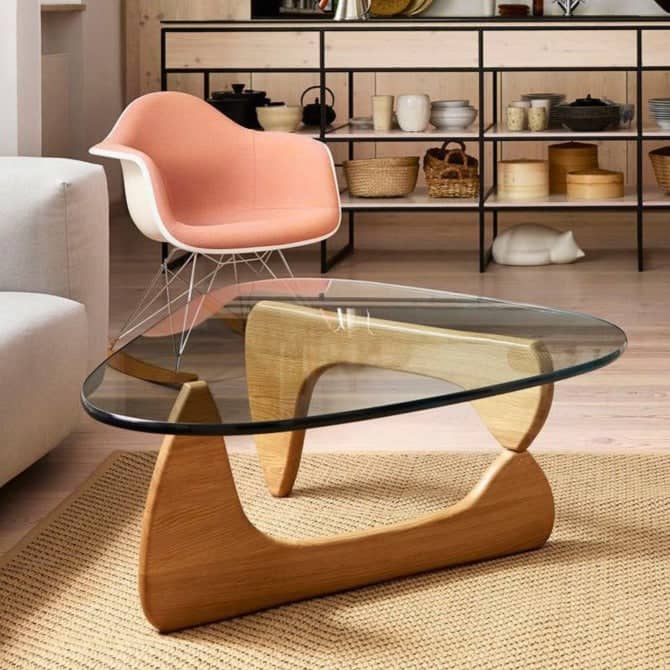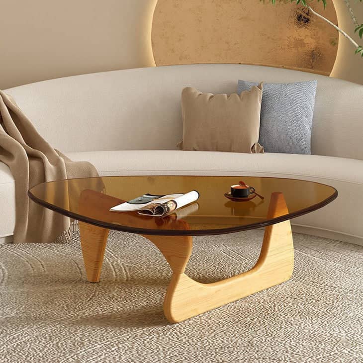 تتميز طاولة القهوة بتصميم منحدر وانيق . وتتميز بلمسة نهائية محايدة تنسق مع أي ديكور تقريبًا ، كما أنها مصنوعة من الزجاج والأرجل الصلبة الخشبية لتكمل البنية القوية إلى جانب تصميم ممتع.