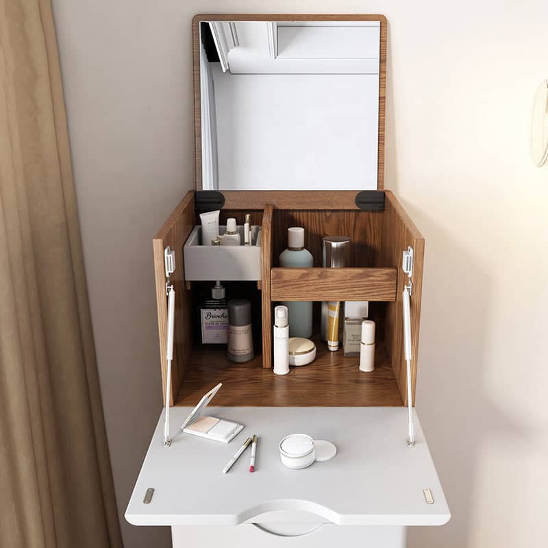 تتميز التسريحة ووحدات للتخزين المدمج والمفتوح بتصميم حديث تعمل بشكل جيد في كل من تخزين أدوات التجميل والأدوات المنزلية. تتميز بلمسة نهائية محايدة تنسق مع أي ديكور تقريبًا ، كما أن سطح التسريحة المصنوعة من الخشب ام دي اف يمنحها بنية متينة إلى جانب تصميم ممتع.