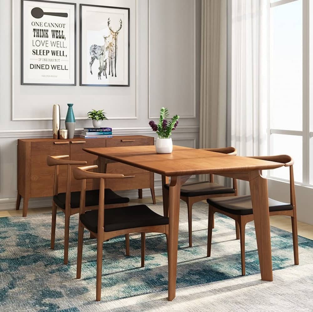 تتميز طاولة الطعام بتصميم حديث يعمل بشكل جيد في وضع الطعام والمهام اليومية. تتميز بلمسة نهائية محايدة تنسق مع أي ديكور تقريبًا ، كما أن سطح الترابيزة المصنوعة من الخشب الزان والأرجل الخشبية يمنحها بنية صلبة ومتينة إلى جانب تصميم ممتع.