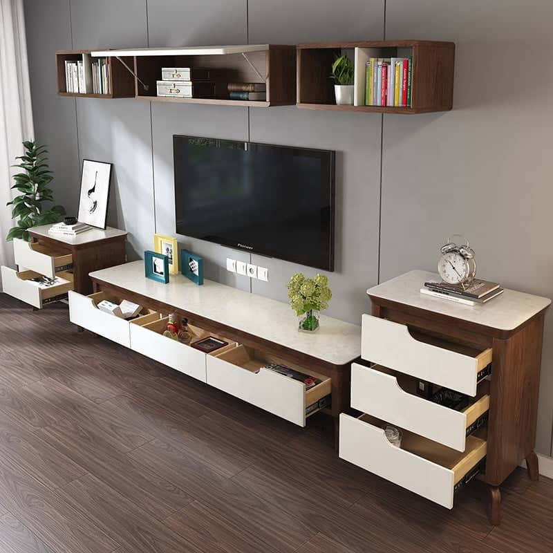 اللون : خشبي غامق * أبيضالمقاس : طاولة تلفاز العمق 42 * عرض 200 * ارتفاع 42.5 سم / طاولة جانبية العمق 42 * عرض 63 * ارتفاع 59-78 سم