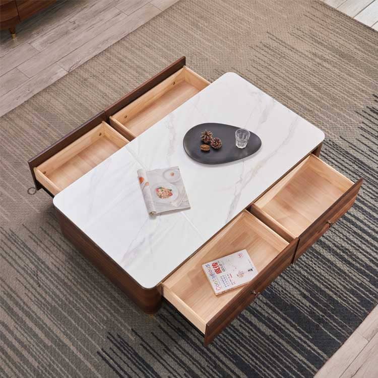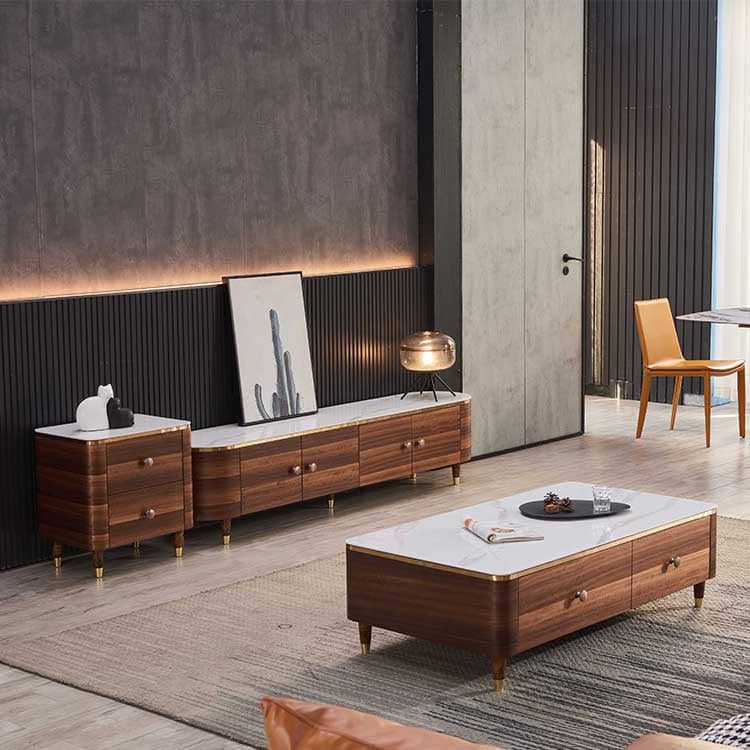 يتميز طقم الطاولات بسطح مفتوح و عدة وحدات مع تصميم عصري وحديث . وتتميز بلمسة نهائية محايدة تنسق مع أي ديكور تقريبًا ، كما أنها مصنوعة من خشب الزان ورخام الصناعي والأرجل الصلبة الخشبية لتكمل البنية القوية إلى جانب تصميم ممتع.