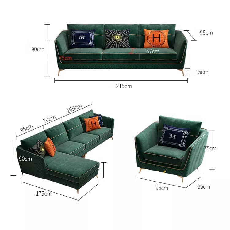 المقاس : الكرسي : العمق 95 * عرض 95 * ارتفاع 75 سم / الكنبة الثلاثي : العمق 95 * عرض 215 * ارتفاع 90 سم / الكنبة الرباعي : العمق 175 * عرض 330 * ارتفاع 90 سم