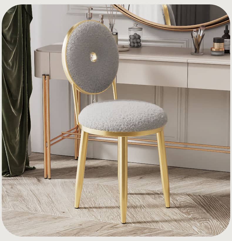 يتميز كرسي التسريحة بتصميم فاخر وشيك . ويتميز بلمسة نهائية محايدة تنسق مع أي ديكور تقريبًا ، كما أنه مصنوع من الصوف والمعدن والأرجل الصلبة المعدنية لتكمل البنية القوية إلى جانب تصميم ممتع.