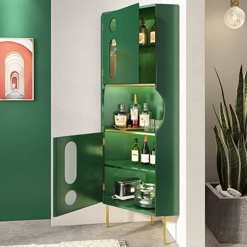 تتميز الكوفي كورنر بشكلها الهندسي الرائع مع وحدات تخزين بتصميم شيك . وتتميز بلمسة نهائية محايدة تنسق مع أي ديكور تقريبًا ، كما أنها مصنوعة من خشب الام دي اف والزجاج والستانلس والأرجل الصلبة لتكمل البنية القوية إلى جانب تصميم ممتع.