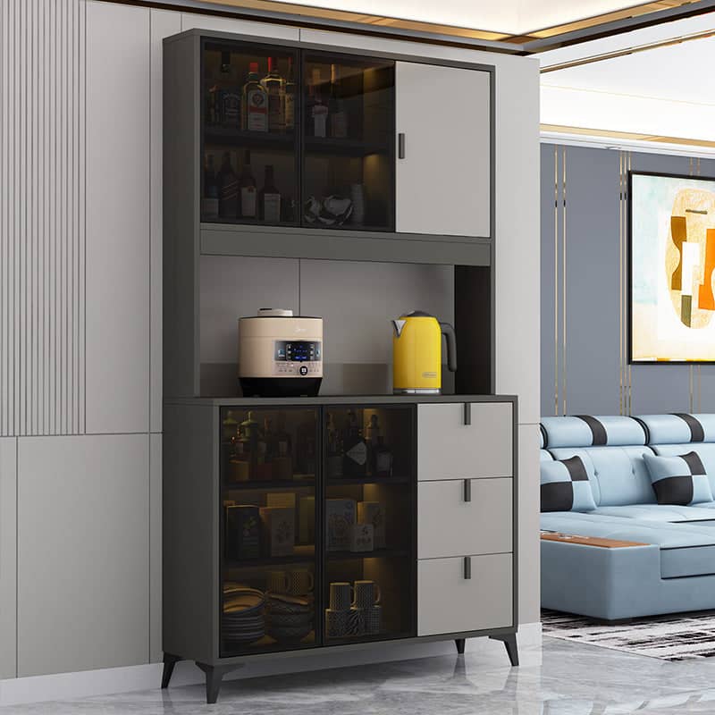 يتميز بوفيه الطعام برف ووحدات تخزبن مميزة وبتصميم حديث يعمل بشكل جيد في تخزين الأدوات المنزلية. يتميز بلمسة نهائية محايدة تنسق مع أي ديكور تقريبًا ، كما أن سطح البوفيه المصنوع من الخشب الام دي اف والأرجل الخشبية يمنحهه بنية صلبة ومتينة إلى جانب تصميم ممتع.