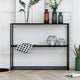 يتميز الكونسول بسطح مفتوح مع رف بتصميم انيق . ويتميز بلمسة نهائية محايدة تنسق مع أي ديكور تقريبًا ، كما أنه مصنوع من خشب الام دي اف والمعدن والأرجل الصلبة لتكمل البنية القوية إلى جانب تصميم ممتع.