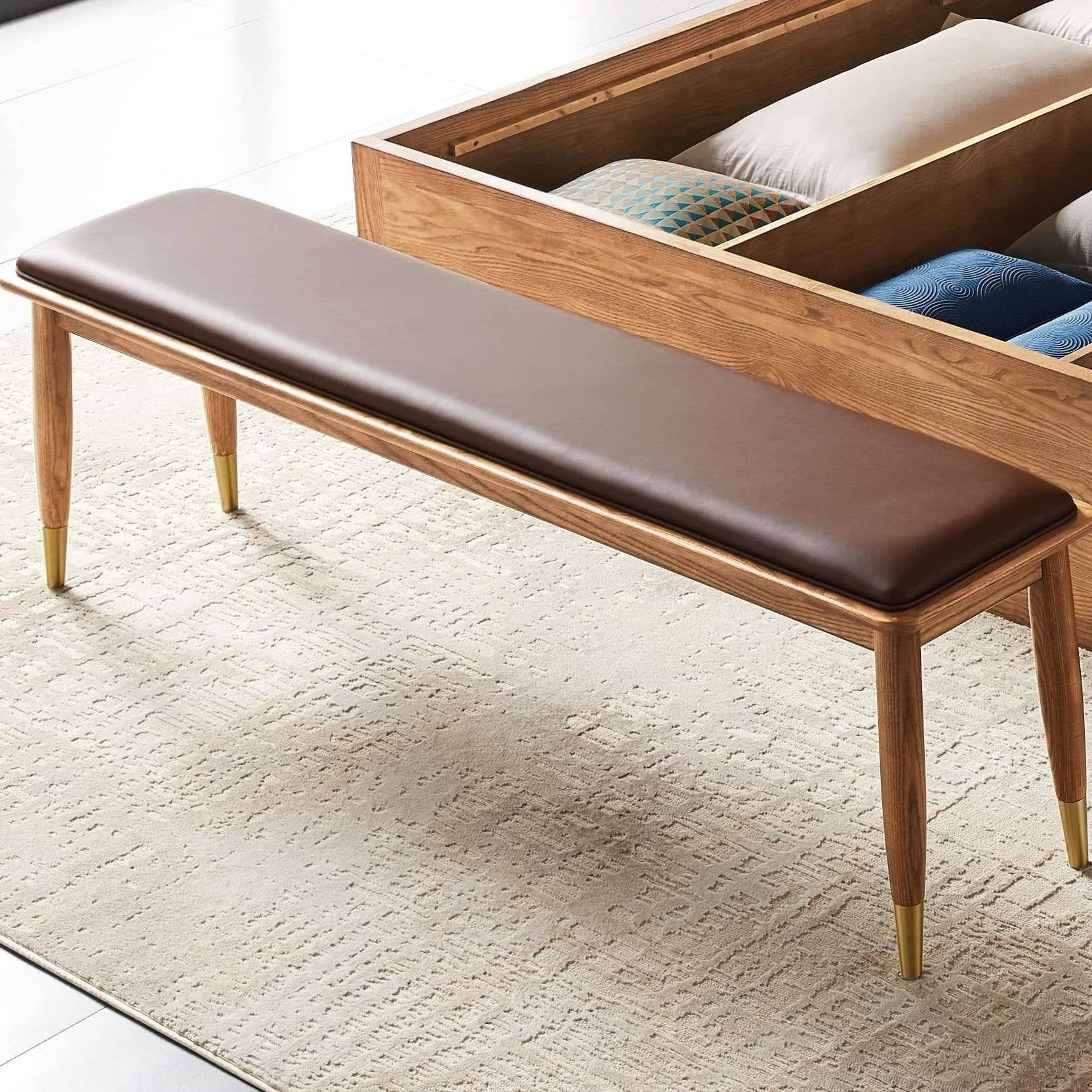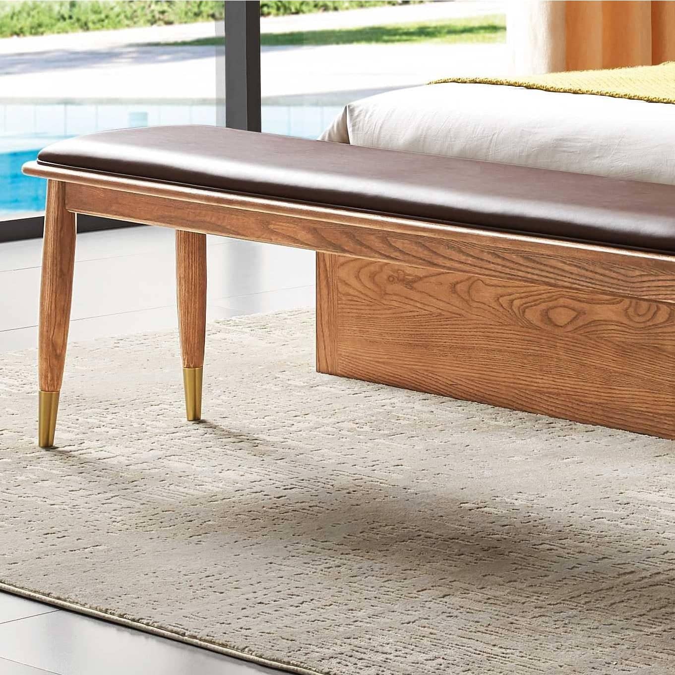 يتميز مقعد البنش بتصميم مميز ومريح للأسترخاء . ويتميز بلمسة نهائية محايدة تنسق مع أي ديكور تقريبًا ، كما أنه مصنوع من الجلد والقاعدة الصلبة الخشبية لتكمل البنية القوية إلى جانب تصميم ممتع.