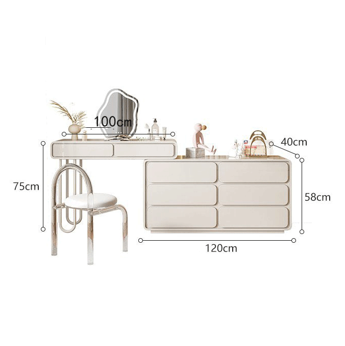 تتميز التسريحة بمرآة عملية ووحدات للتخزين المدمج والمفتوح بتصميم حديث تعمل بشكل جيد في كل من تخزين أدوات التجميل والأدوات المنزلية. تتميز بلمسة نهائية محايدة تنسق مع أي ديكور تقريبًا ، كما أن سطح التسريحة المصنوعة من الخشب ام دي اف والأرجل الخشبية يمنحها بنية متينة إلى جانب تصميم ممتع.