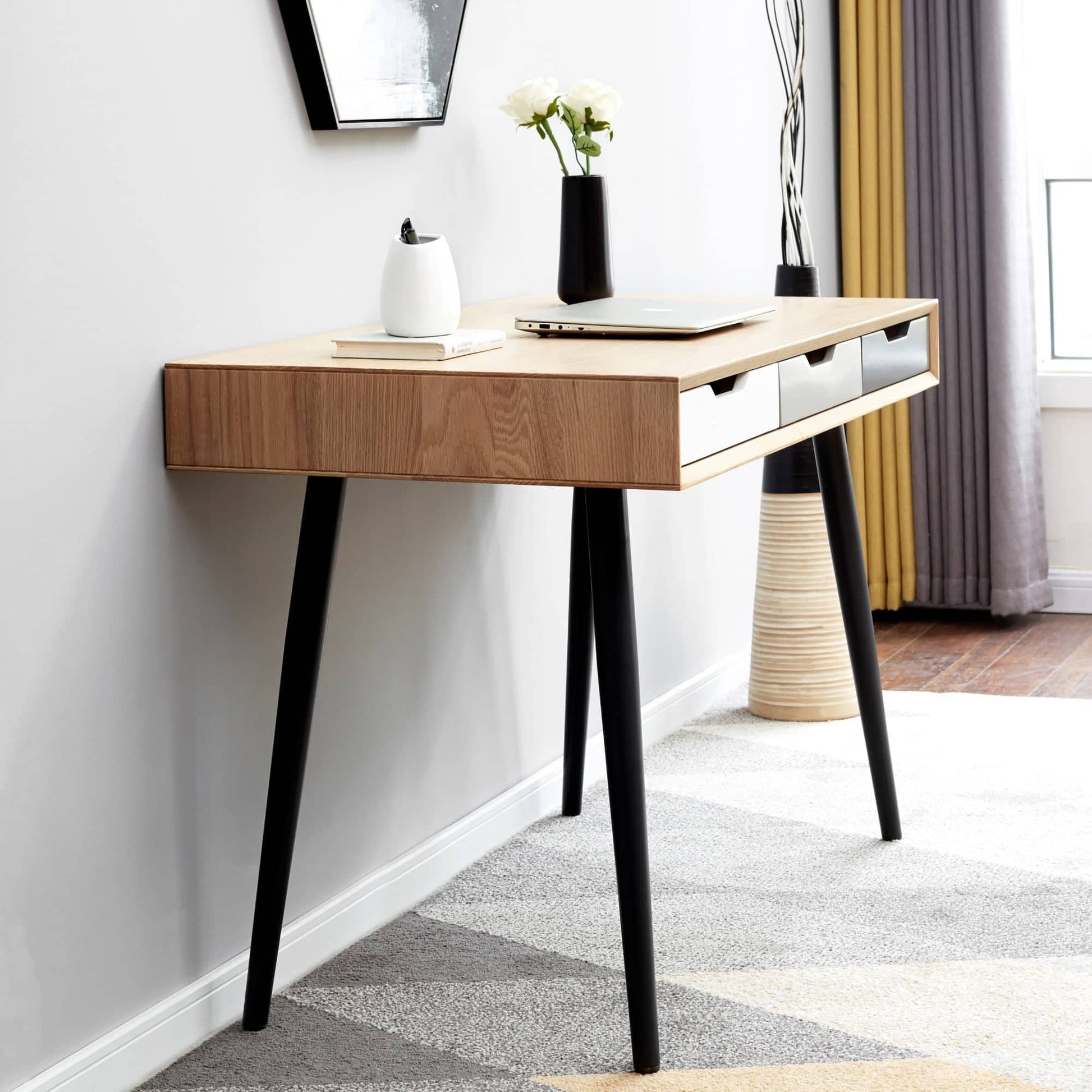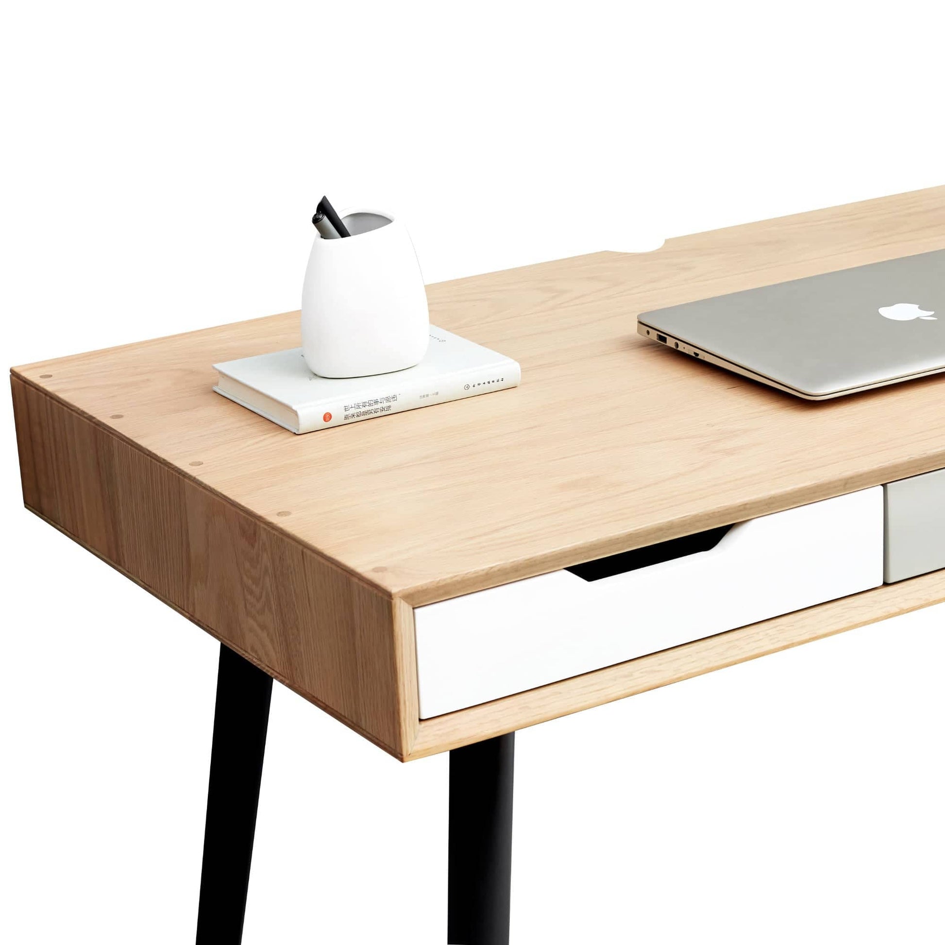 يتميز المكتب بوحدات للتخزين المدمج بتصميم انيق يعمل بشكل جيد في كل من الدراسة والمهام اليومية. تتميز بلمسة نهائية محايدة تنسق مع أي ديكور تقريبًا ، كما أن سطح المكتب المصنوع من الخشب المضغوط والأرجل الخشبية يمنحه تصميم ممتع.