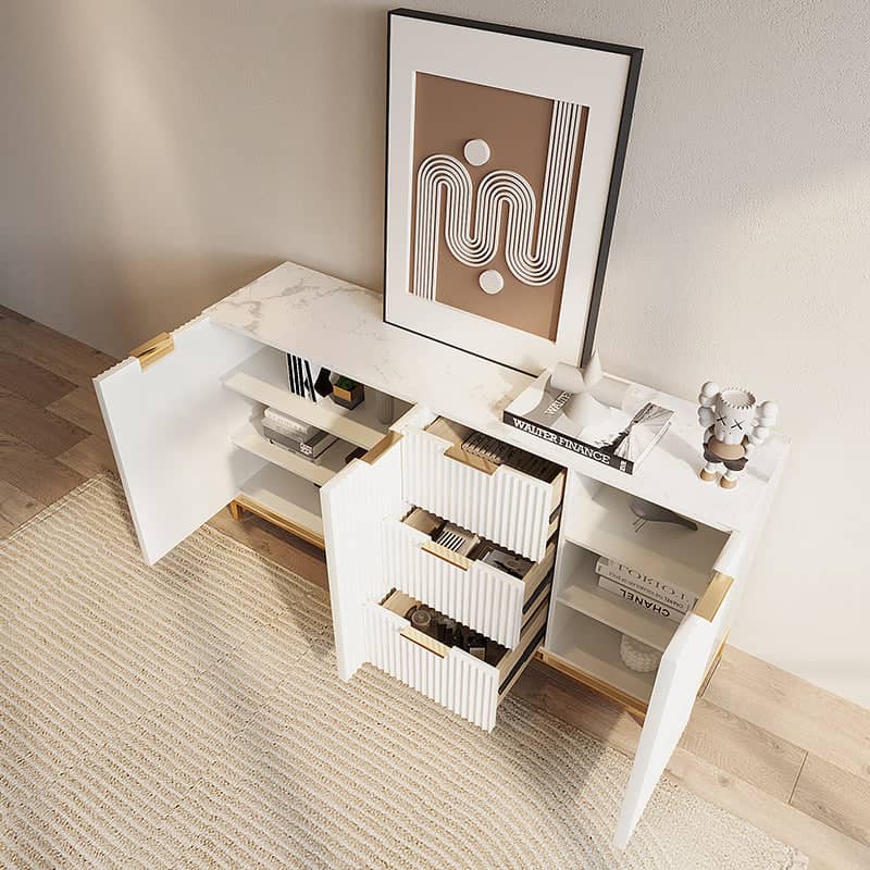 تتميز وحدة التخزين بعددة ادراج للتخزين بتصميم انيق . ويتميز بلمسة نهائية محايدة تنسق مع أي ديكور تقريبًا ، كما أنها مصنوعة من خشب الام دي اف والأرجل الصلبة المعدنية لتكمل البنية القوية إلى جانب تصميم ممتع.