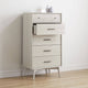 تتميز وحدة التخزين بعددة ادراج للتخزين بتصميم بسيط . ويتميز بلمسة نهائية محايدة تنسق مع أي ديكور تقريبًا ، كما أنها مصنوعة من خشب الام دي اف والأرجل الصلبة الخشبية لتكمل البنية القوية إلى جانب تصميم ممتع.