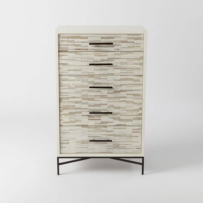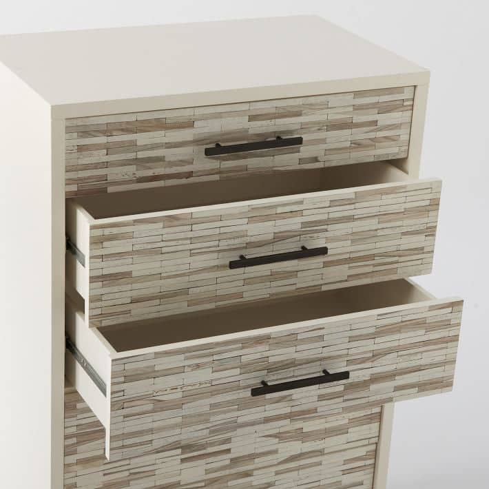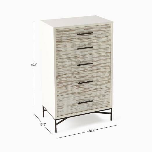 تتميز وحدة التخزين بعددة ادراج للتخزين بتصميم حديث . ويتميز بلمسة نهائية محايدة تنسق مع أي ديكور تقريبًا ، كما أنها مصنوعة من المعدن وخشب الام دي اف والأرجل الصلبة الخشبية لتكمل البنية القوية إلى جانب تصميم ممتع.