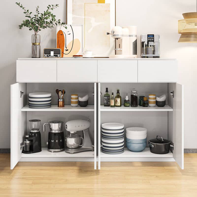 يتميز بوفيه الطعام برف ووحدات تخزبن مميزة وبتصميم حديث يعمل بشكل جيد في تخزين الأدوات المنزلية. يتميز بلمسة نهائية محايدة تنسق مع أي ديكور تقريبًا ، كما أن سطح البوفيه المصنوع من الخشب الام دي اف يمنحهه بنية صلبة ومتينة إلى جانب تصميم ممتع.