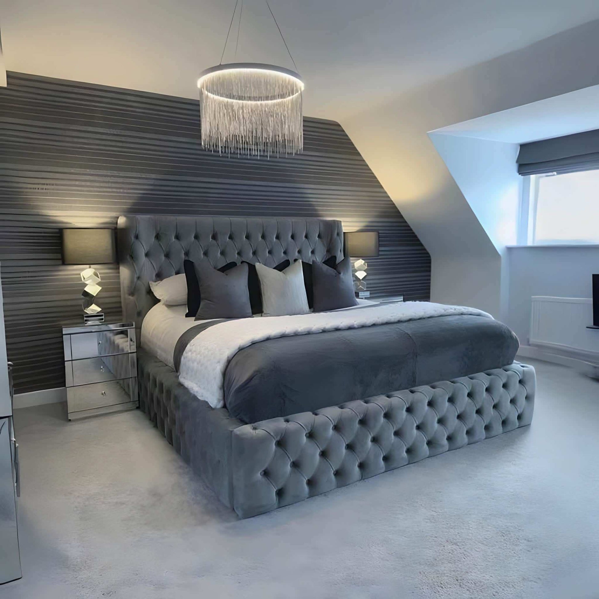 سرير سوبر كينج خشب طبيعي، 220*220*140 سم