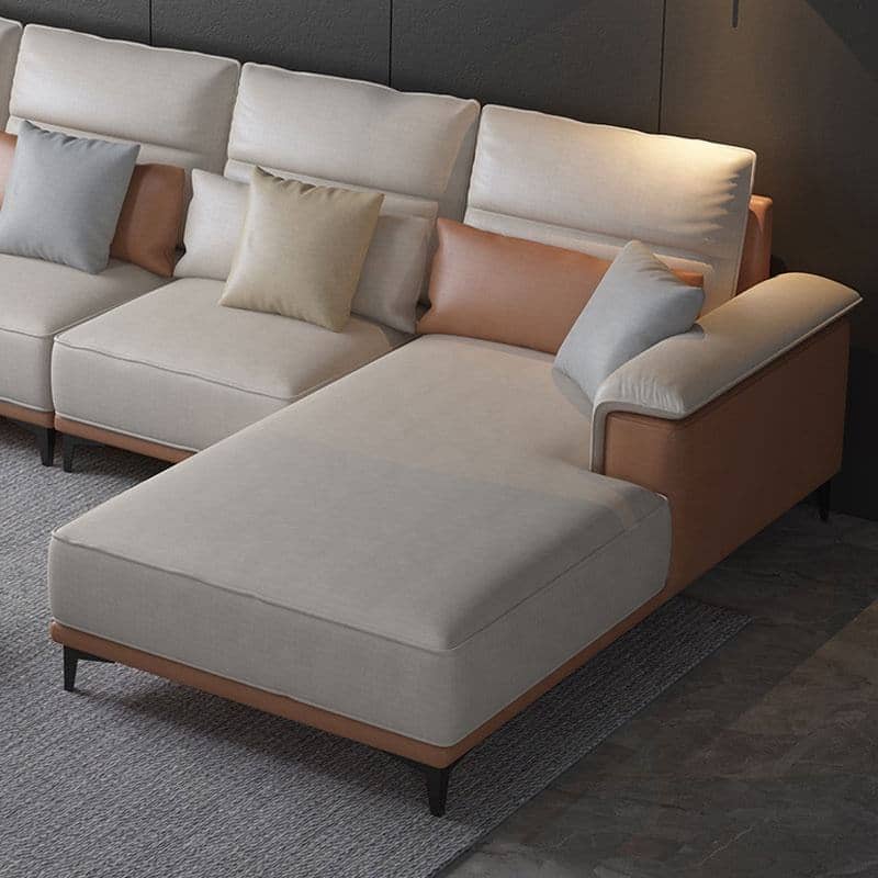 ستضفي أريكة الزاوية الأنيقة هذه لمسة عصرية وفاخرة على أي مساحة معيشة. يتميز بمقعد مريح ومساند رأس قابلة للتعديل وحشوة عميقة ومساند للأذرع داعمة لراحة فائقة. يوفر الإطار الخشبي الصلب ثباتًا وقوة تحمل ممتازة بينما تضفي الأرجل المعدنية مظهرًا عصريًا عليه. المفروشات الجلدية سهلة التنظيف وهي تأتي بلون أبيض كلاسيكي مع إطار برتقالي يضيف لمسة من اللون إلى أي غرفة. مثالية للترفيه عن العائلة والأصدقاء أو لمجرد الاسترخاء بعد يوم طويل، ستجعل هذه الأريكة الركنية بيانًا لافتًا للنظر في منزلك.