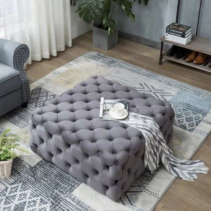 بوف كابتونيه مربع، مصنوع من قماش قطيفة ناعم و خشب كونتر الذي ستضفي لمسة من الأناقة لأي مكان في منزلك. اضيفه ليعطيك مظهر جمالي لغرفة معيشتك.