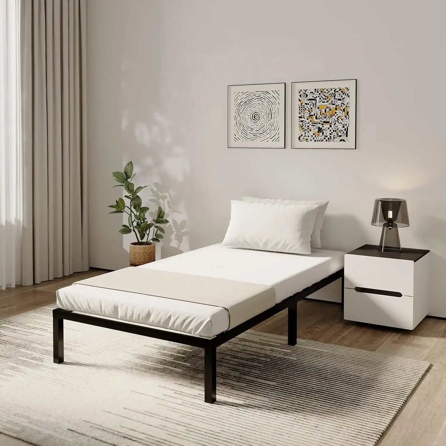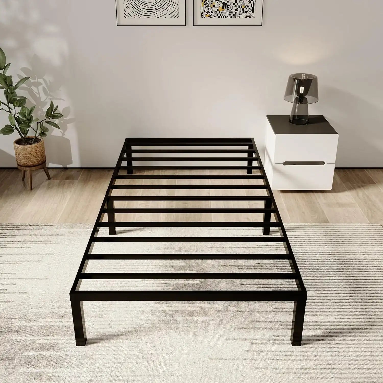 إطار سرير معدني، منصة معدنية منخفضة الارتفاع، تصميم متين بمقاس فردي، مثالي لغرفة النوم لتوفير الراحة والدعمة مع مظهر عصري