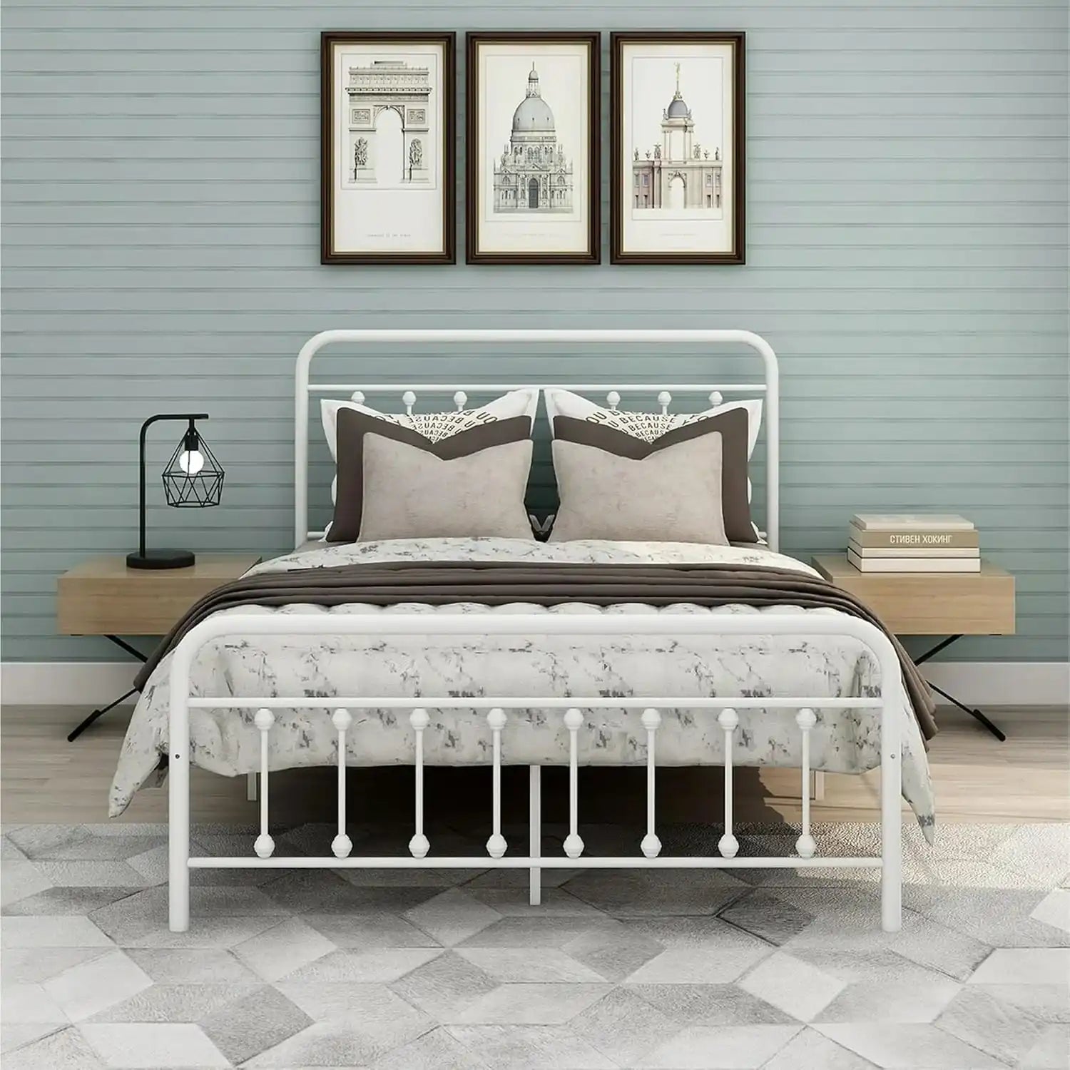 إطار سرير معدني كامل، منصة سرير معدنية مزودة بلوح رأس ولوح قدم عتيق على الطراز الفيكتوري، مثالي لإضافة لمسة فاخرة وأنيقة لأي غرفة نوم