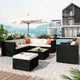 طقم خارجي عصري مكون من ركنة، كرسي، ترابيزة، وبوف، مصمم بإطار حديدي متين مطلي بدهان إلكترواستاتيك مقاوم للصدأ، مما يوفر متانة وحماية من العوامل الجوية. الطقم مجدول بخيوط راتان بيور عالية الجودة، مما يضيف لمسة طبيعية وأنيقة. مثالي للاستخدام في المساحات الخارجية ، حيث يوفر راحة واستجمام مع تصميم جذاب ومتين