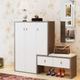خزانة أحذية متعددة الطوابق تتميز الخزانة بمقعد للجلوس وادراج بعددة طوابق بتصميم حديث يعمل بشكل رائع . وتتميز بلمسة نهائية محايدة تنسق مع أي ديكور تقريبًا ، كما أن سطح الخزينة المصنوع من الخشب الام دي اف و القاعدة الصلبة يمنحها بنية متينة إلى جانب تصميم ممتع.