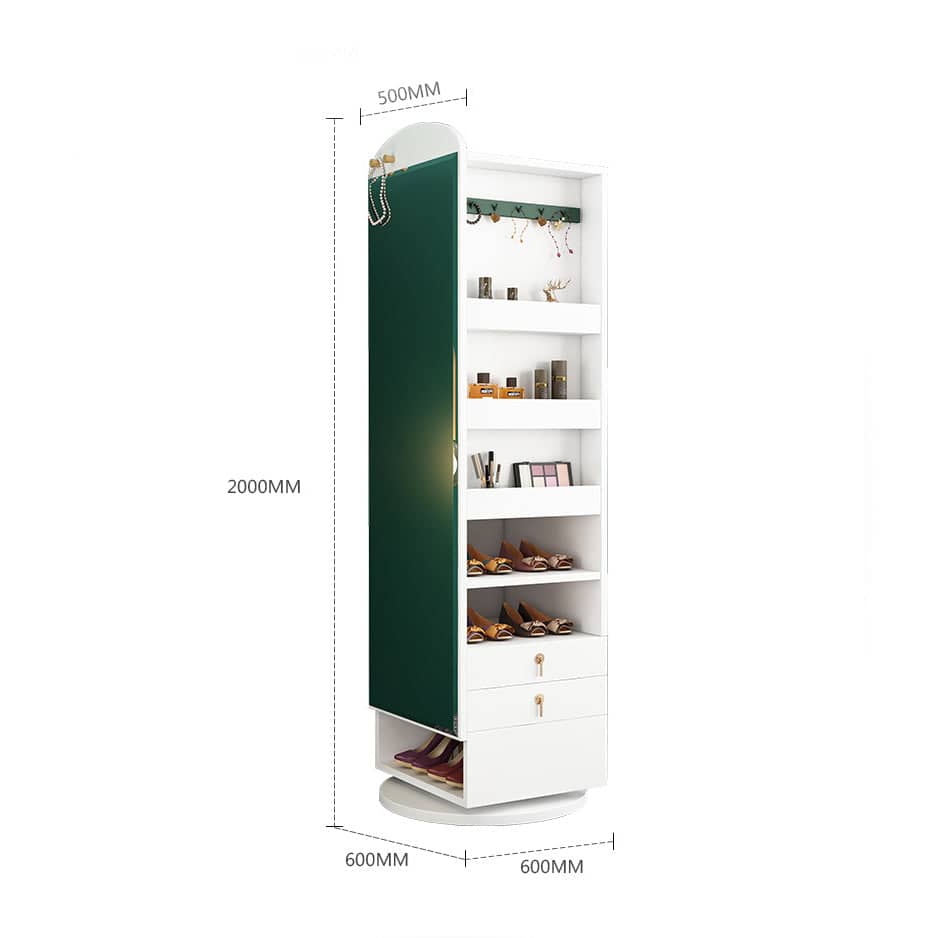خزانة أحذية متعددة الاستخدامات تتميز خزانة الأحذية بأرفف مميزة مع خاصية الدوران بتصميم مودرن . وتتميز بلمسة نهائية محايدة تنسق مع أي ديكور تقريبًا ، كما أن الوحدة مصنوعة من الخشب الام دي اف والقاعدة الصلبة الخشبية لتكمل البنية القوية إلى جانب تصميم ممتع.