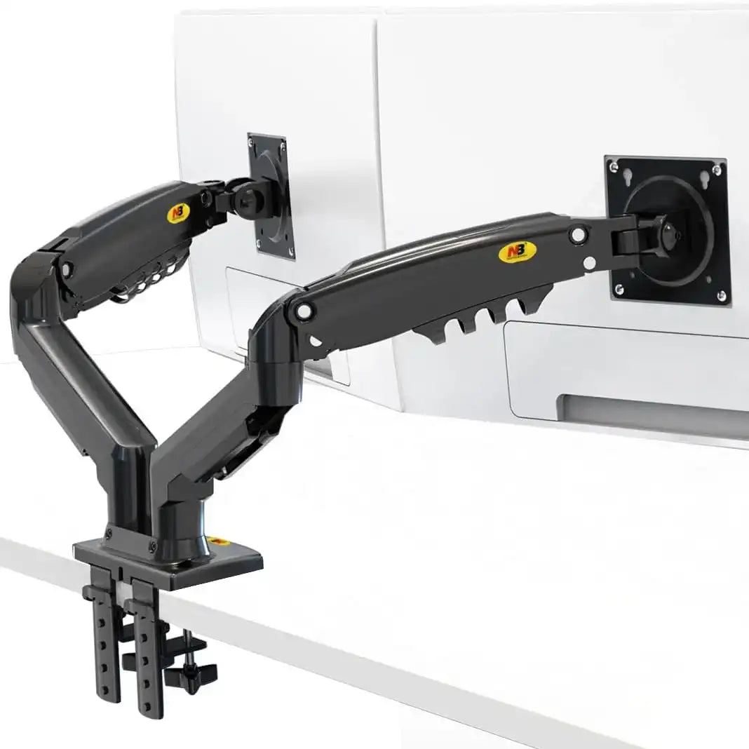 حامل شاشة مزدوج بمسند يعمل بنظام دوران كامل الحركة، يتيح لك ضبط كل شاشة بسهولة لتحسين الإنتاجية وتجربة مشاهدة مريحة