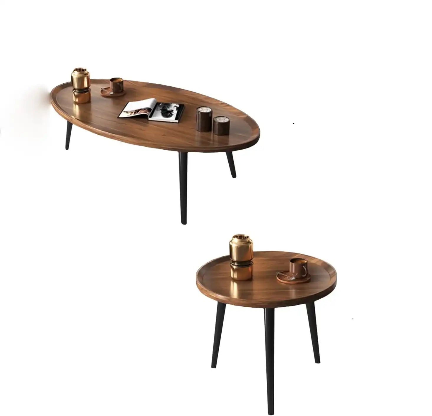 مجموعة طاولات قهوة دائرية متداخلة من قطعتين، بتصميم عصري وسهل التجميع، مثالية لغرفة المعيشة والمساحات الصغيرة