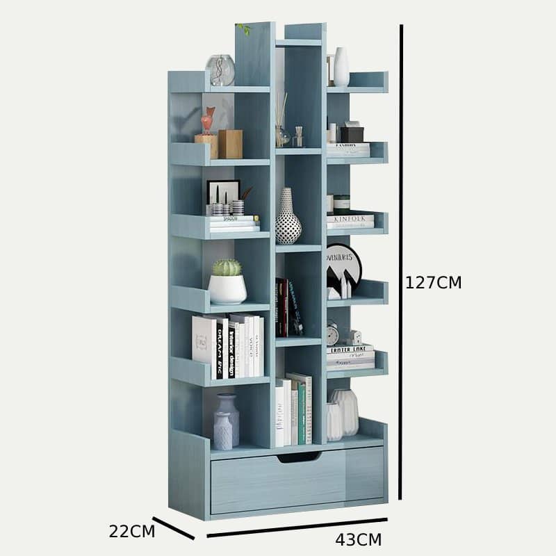 تتميز وحدة الأرفف بوحدات وأرفف للتخزين المدمج والمفتوح وتصميم حديث تعمل بشكل جيد في تخزين الأدوات المنزلية. تتميز بلمسة نهائية محايدة تنسق مع أي ديكور تقريبًا ، كما أن سطح وحدة الأرفف المصنوعة من الخشب الام دي اف يمنحها بنية متينة إلى جانب تصميم ممتع.