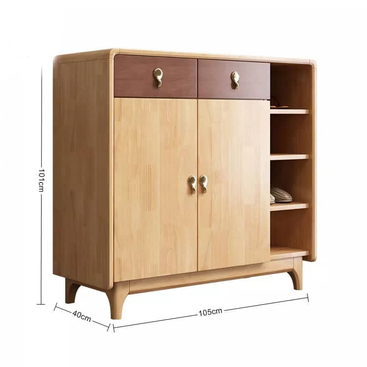 خزانة أحذية بأدراج تتميز خزانة الأحذية بشكل ريفي مميز وبسطح مفتوح وادراج وارفف بتصميم رائع . وتتميز بلمسة نهائية محايدة تنسق مع أي ديكور تقريبًا ، كما أن الوحدة مصنوعة من الخشب الزان والأرجل الصلبة الخشبية لتكمل البنية القوية إلى جانب تصميم ممتع.